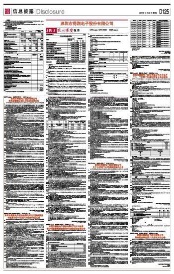 深圳市得润电子股份有限公司2012第三季度报告 2012-10-26 来源:证券时报网 作者: