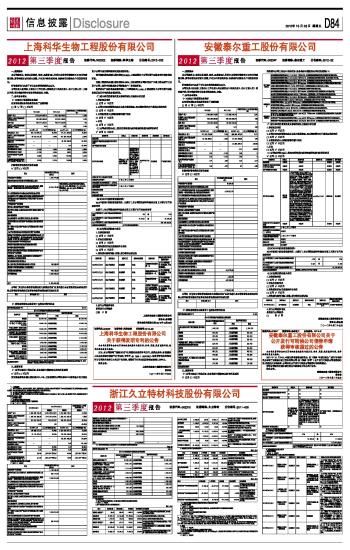 5、发行公司债券情况 是否发行公司债券 □是 √ 否 上海科华生物工程股份有限公司 董事长:唐伟国 董事会批准报送日期:2012年10月26日 本版导读: