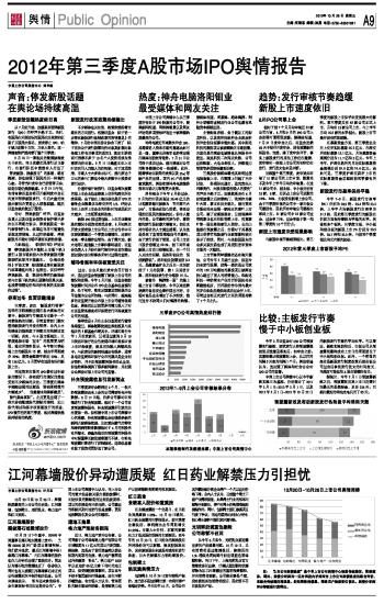2012年第三季度A股市场IPO舆情报告 2012-10-26 来源:证券时报网 作者:刘宇琪