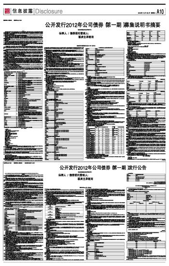 中国水利水电建设股份有限公司公开发行2012年公司债券(第一期)发行公告(北京市海淀区车公庄西路22号) 2012-10-26 来源:证券时报网 作者:
