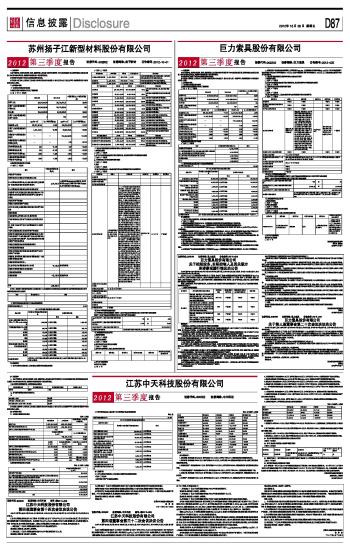 证券代码:002652 证券简称:扬子新材 公告编号:2012-10-01 苏州扬子江新型材料股份有限公司2012第三季度报告 2012-10-26 来源:证券时报网 作者: