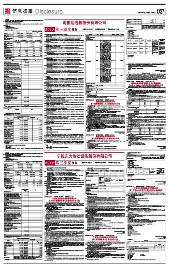 宁波东力传动设备股份有限公司2012第三季度报告