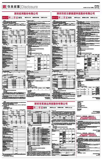 深圳市拓日新能源科技股份有限公司2012第三季度报告