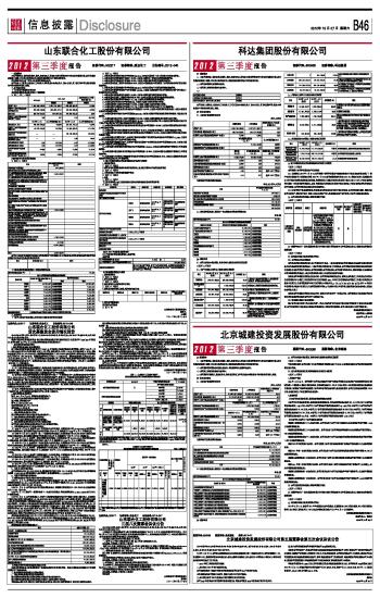 山东联合化工股份有限公司公告(系列) 2012-10-27 来源:证券时报网 作者:
