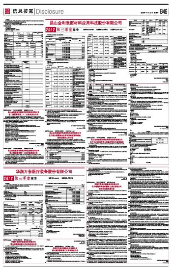 昆山金利表面材料应用科技股份有限公司2012第三季度报告 2012-10-27 来源:证券时报网 作者: