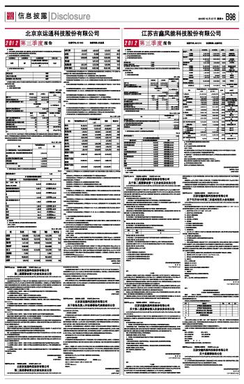 江苏吉鑫风能科技股份有限公司2012第三季度报告 2012-10-27 来源:证券时报网 作者: