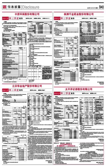 中原环保股份有限公司2012第三季度报告