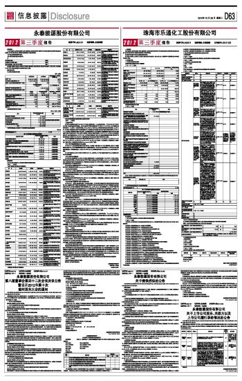 永泰能源股份有限公司2012第三季度报告 2012-10-30 来源:证券时报网 作者: