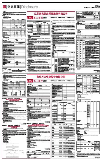 焦作万方铝业股份有限公司公告(系列) 2012-10-30 来源:证券时报网 作者:
