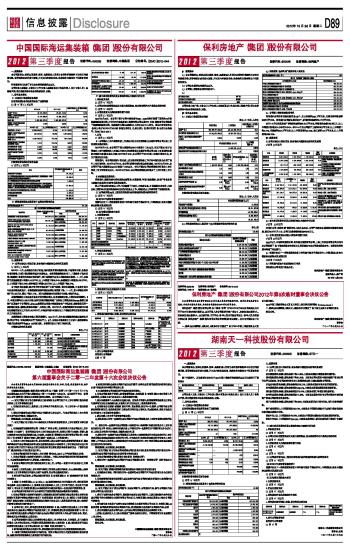 湖南天一科技股份有限公司2012第三季度报告 2012-10-30 来源:证券时报网 作者: