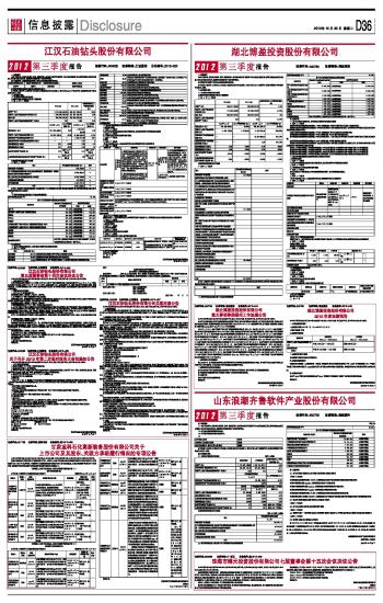 山东浪潮齐鲁软件产业股份有限公司2012第三季度报告 2012-10-30 来源:证券时报网 作者: