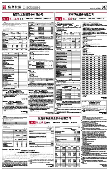 证券代码:000718 证券简称:苏宁环球 公告编号:2012-036 苏宁环球股份有限公司 关于股份解除质押公告 本公司及董事会全体成员保证公告内容的真实、准确和完整,对公告的虚假记载、误导性陈述或者重大遗漏负连带责任。 2012年10月29日,苏宁环球股份有限公司(以下简称“公司”)接到公司大股东苏宁环球集团有限公司的通知,原质押给上海国际信托有限公司的本公司股份合计123,600,000股已解除质押,并在中国证券登记结算有限责任公司深圳分公司办理了相关解除质押登记手续。 截至目前,苏宁环球集团有限公司持有公司股份547,726,252股,占公司总股本的26.81%。本次解除质押后其处于质押状态的股份数为197,550,000股,占公司总股本的9.67%。 特此公告。 苏宁环球股份有限公司董事会 2012 年10月30日 本版导读: