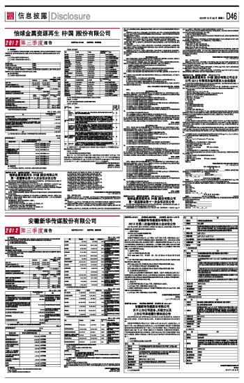 怡球金属资源再生(中国)股份有限公司公告(系列) 2012-10-30 来源:证券时报网 作者: