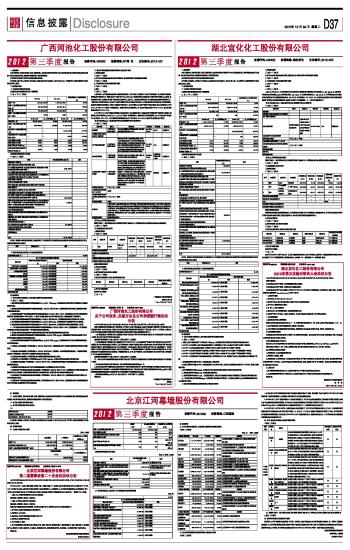 广西河池化工股份有限公司2012第三季度报告 2012-10-30 来源:证券时报网 作者: