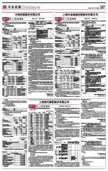 上海现代制药股份有限公司公告(系列) 2012-10-31 来源:证券时报网 作者: