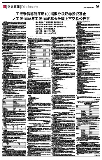 工银瑞信睿智深证100指数分级证券投资基金之工银100A与工银100B基金份额上市交易公告书 2012-10-31 来源:证券时报网 作者: