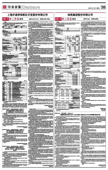 上海外高桥保税区开发股份有限公司2012第三季度报告
