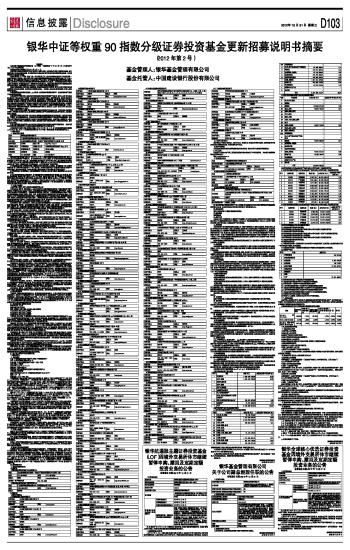 银华中证等权重90指数分级证券投资基金更新招募说明书摘要