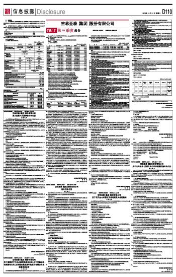 吉林亚泰(集团)股份有限公司2012第三季度报告