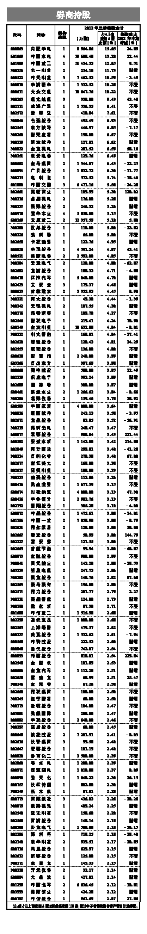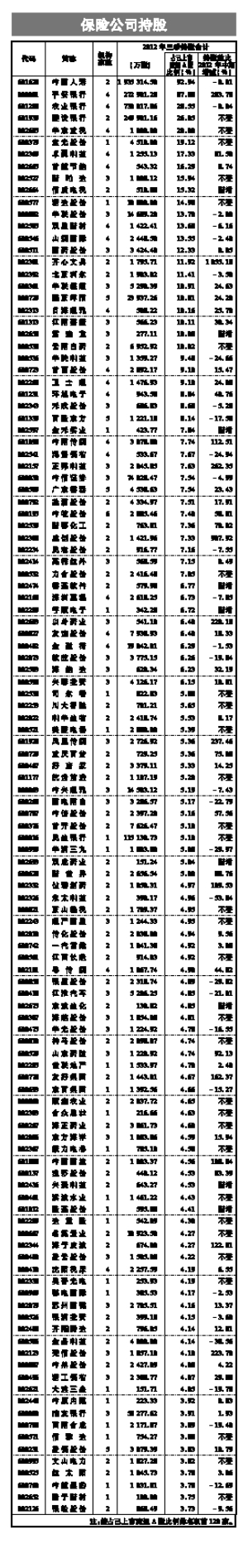 2012年三季度上市公司机构持股
