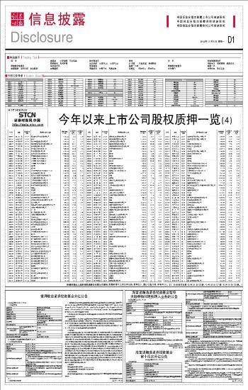 深市主板 000017 *ST中华A D23 000045 深纺织A D4 000527 美的电器 D16 000622 S*ST恒立 D16 000667 名流置业 D24 000677 *ST海龙 D16 000679 大连友谊 D4 000693 S*ST聚友 D23 000709 河北钢铁 D4 000760 博盈投资 D9,D10,D11 000860 顺鑫农业 D16 深市中小板 002085 万丰奥威 D16 002099 海翔药业 D16 002100 天康生物 D24 002137 实益达 D13 002155 辰州矿业 D17,D18,D19 002165 红宝丽 A8 002201 九鼎新材 D16 002207 准油股份 D24 002234 民和股份 D13 002276 万马电缆 A8 002311 海大集团 A8 002337 赛象科技 D24 002450 康得新 D12 002457 青龙管业 D22 002536 西泵股份 D23 002556 辉隆股份 D13 002617 露笑科技 A8 002633 申科股份 D13 002703 浙江世宝 A8 深市B股 200152 山航B D4 沪市主板 600074 中达股份 D24 600123 兰花科创 D14,D15 600151 航天机电 D23 600290 华仪电气 D23 600312 平高电气 D23 600356 恒丰纸业 D24 600585 海螺水泥 D2,D3 600589 广东榕泰 D24 600684 珠江实业 D13 600784 鲁银投资 D16 600837 海通证券 D16 601222 林洋电子 D24 601299 中国北车 D13 601388 怡球资源 D23 601588 北辰实业 D13 601601 中国太保 D13 601669 中国水电 D4 603002 宏昌电子 D13 603993 洛阳钼业 D23 基金 博时基金 B1 博时基金 D22 长城基金 D24 东吴基金 D22 富安达优势成长 C3 工银瑞信 D4 海富通 D1 华安创新 D20,D19 华商基金 D13 汇丰晋信 D16 汇添富 D24 摩根士丹利华鑫 D5,D6,D7,D8 南方基金 D23 农银汇理 B1 诺安基金 D24 上投摩根 D24 信诚基金 D24 易方达50指数 D21 易方达深证100 D22 银河基金 A1 银河基金 D1 银华基金 A1 其他 上海产权 D4 本版导读: