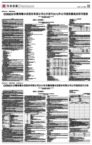 | 安徽海螺水泥股份有限公司公开发行2012年公司债券募集说明书摘要 | 2012-11-05 | |