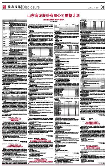 山东海龙股份有限公司重整计划 2012-11-06 来源:证券时报网 作者: