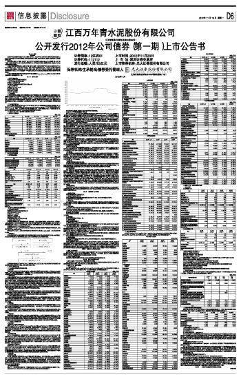股票简称:江西水泥 股票代码:000789 公告编号:2012-52 江西万年青水泥股份有限公司 公开发行2012年公司债券(第一期)上市公告书 2012-11-19 来源:证券时报网 作者:
