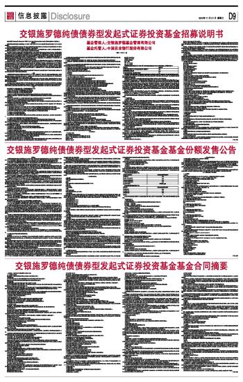 交银施罗德纯债债券型发起式证券投资基金招募说明书 2012-11-21 来源:证券时报网 作者: