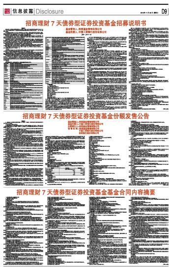招商理财7天债券型证券投资基金份额发售公告