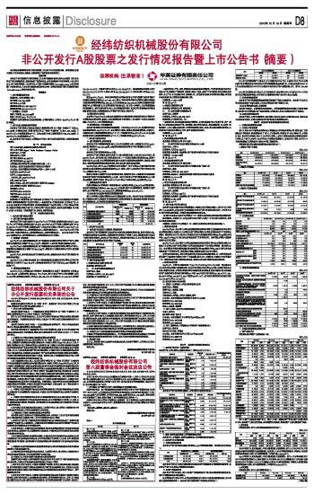 经纬纺织机械股份有限公司非公开发行A股股票之发行情况报告暨上市公告书(摘要)