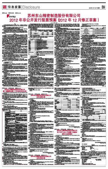 苏州东山精密制造股份有限公司公告(系列) 2012-12-15 来源:证券时报网 作者: