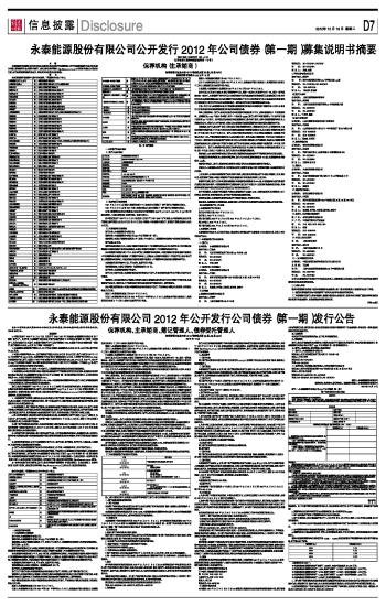 永泰能源股份有限公司2012年公开发行公司债券(第一期)发行公告