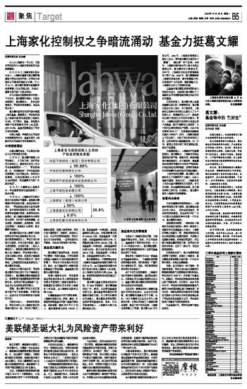 上海家化控制权之争暗流涌动 基金力挺葛文耀 2012-12-24 来源:证券时报网 作者:杜志鑫