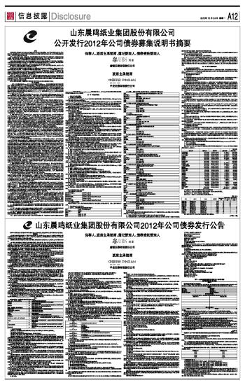 山东晨鸣纸业集团股份有限公司2012年公司债券发行公告 2012-12-24 来源:证券时报网 作者: