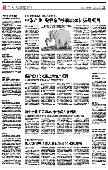 中体产业“蛇吞象”欲撬动30亿扬州项目