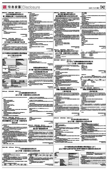 三、律师见证情况 根据公司法律顾问现场见证并由其所出具的法律意见书,认为本次股东大会的召集、召开程序符合《公司法》、中国证监会《上市公司股东大会规则》和《广东明珠集团股份有限公司章程》的有关规定;出席会议人员资格、会议召集人资格和会议表决程序合法有效。因此本次大会的审议结果有效。 四、备查文件目录 (一)广东明珠集团股份有限公司2013年第一次临时股东大会决议; (二)广东国声律师事务所关于本次股东大会的法律意见书。 特此公告。 广东明珠集团股份有限公司董事会 二○一三年一月十五日 本版导读: