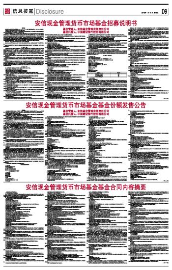 安信现金管理货币市场基金招募说明书 2013-01-16 来源:证券时报网 作者: