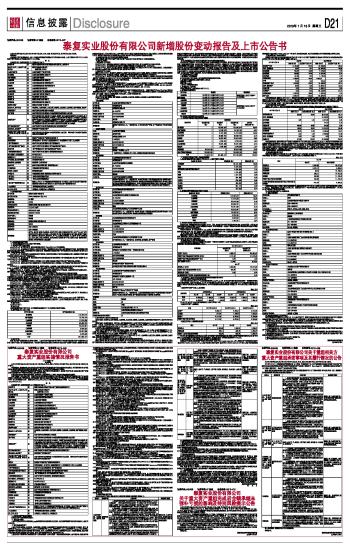 泰复实业股份有限公司新增股份变动报告及上市公告书