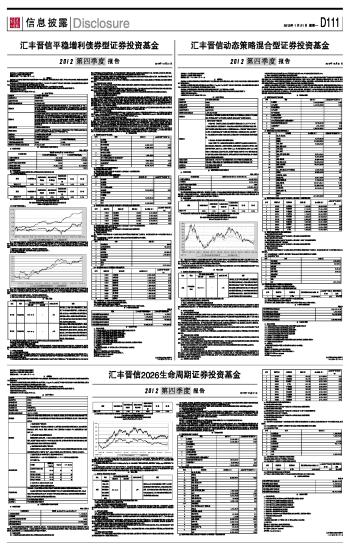汇丰晋信平稳增利债券型证券投资基金2012第四季度报告 2013-01-21 来源:证券时报网 作者: