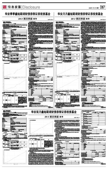 华安季季鑫短期理财债券型证券投资基金2012第四季度报告 2013-01-21 来源:证券时报网 作者: