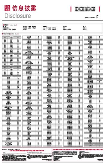 深市主板 000063 中兴通讯 D13 000416 民生投资 D13 000504 ST传媒 D16 000504 ST传媒 D16 000513 丽珠集团 D16 000527 美的电器 D13 000551 创元科技 D4 000587 金叶珠宝 D13 000693 S*ST聚友 D17 000738 中航动控 D5,D6 000755 山西三维 D4 000760 博盈投资 D14 000920 南方汇通 D13 深市中小板 002014 永新股份 D13 002061 江山化工 D17 002281 光迅科技 D17 002318 久立特材 D13 002341 新纶科技 D13 002470 金正大 D16 002605 姚记扑克 D13 002618 丹邦科技 D4 深市B股 200152 山航B D14 沪市主板 600038 哈飞股份 D13 600074 中达股份 D1 600151 航天机电 D7,D8 600236 桂冠电力 D4 600481 双良节能 D13 基金 安信基金 B1 博时基金 B4/定 博时基金 A1/定 长信基金 B1/定 长信基金 D14 大成基金 D16 富安达货币 B1/定 富国基金 D16 工银保本 A1/定 工银瑞信 C4 广发基金 D16 海富通大中华精选 D102 海富通非周期100 D103 海富通非周期100联接 D103 海富通风格优势 D100 海富通股票 D98 海富通国策导向 D104 海富通海外 D98 海富通回报 D99 海富通货币 D99 海富通精选 D99 海富通精选贰号 D98 海富通领先成长 D101 海富通上证周期ETF D102 海富通上证周期ETF联接 D102 海富通收益 D100 海富通稳固收益 D103 海富通稳健添利 D100 海富通稳进增利 D104 海富通中小盘 D101 海富通中证100 D101 海富通中证内地低碳 D104 华安MSCI D59 华安安顺 D57 华安安心收益 D57 华安安信 D59 华安宝利 D59 华安标普石油 D66 华安策略 D60 华安创新 D60 华安大中华 D65 华安动态 D61 华安核心 D60 华安宏利 D61 华安沪深300 D66 华安基金 D14 华安季季鑫 D67 华安科技动力 D66 华安可转债 D64 华安逆向策略 D57 华安强化收益 D62 华安上证180ETF D61 华安上证180ETF联接 D62 华安上证龙头企业 D63 华安上证龙头企业联接 D63 华安深证300 D58 华安升级主题 D64 华安双月鑫 D67 华安稳定 D58 华安稳固收益 D64 华安现金富利 D65 华安香港精选 D63 华安信用四季红 D65 华安行业轮动 D62 华安月月鑫 D67 华安中小盘 D58 华宝宝康灵活 D88 华宝宝康消费品 D87 华宝宝康债券 D90 华宝上证180成长ETF D84 华宝上证180成长ETF联接 D85 华宝兴业标普石油 D86 华宝兴业大盘 D90 华宝兴业动力 D90 华宝兴业多策略 D89 华宝兴业海外 D89 华宝兴业可转债 D85 华宝兴业上证180价值 D86 华宝兴业上证180价值联接 D86 华宝兴业收益 D89 华宝兴业先进 D88 华宝兴业现金宝 D88 华宝兴业新兴产业 D85 华宝兴业行业 D87 华宝兴业医药生物 D84 华宝兴业中证100 D84 华宝兴业中证短融 D87 华宝兴业资源优选 D83 华富策略精选 D135 华富成长趋势 D135 华富价值增长 D136 华富竞争力 D135 华富量子生命力 D137 华富强化回报 D137 华富收益增强 D136 华富中小板 D137 华富中证100 D136 华商策略精选 D130 华商产业升级 D130 华商动态阿尔法 D129 华商基金 D14 华商价值精选 D131 华商领先企业混合 D129 华商盛世成长 D128 华商收益增强 D129 华商稳定增利 D131 华商稳健双利 D130 华商中证500 D128 华商主题精选 D131 华泰柏瑞沪深300 D118 华泰柏瑞沪深300联接 D118 华泰柏瑞积极 D116 华泰柏瑞价值 D116 华泰柏瑞量化 D117 华泰柏瑞上证中小盘 D117 华泰柏瑞上证中小盘联接 D118 华泰柏瑞盛世 D115 华泰柏瑞信用增利 D115 华泰柏瑞行业 D115 华泰柏瑞亚洲领导 D117 华泰上证红利 D116 华夏策略精选 D94 华夏成长 D94 华夏大盘精选 D92 华夏红利混合 D91 华夏沪深300 D93 华夏回报 D92 华夏经典配置 D95 华夏蓝筹核心 D96 华夏理财30天 D91 华夏上证50 D91 华夏盛世精选 D93 华夏收入 D95 华夏现金增利 D92 华夏兴和 D95 华夏兴华 D96 华夏行业精选 D96 华夏亚债 D93 华夏债券 D94 华夏中小企业板 D97 汇丰晋信2016 D112 汇丰晋信2026 D111 汇丰晋信大盘 D112 汇丰晋信低碳 D113 汇丰晋信动态 D111 汇丰晋信恒生A股 D114 汇丰晋信货币市场 D114 汇丰晋信科技先锋 D114 汇丰晋信龙腾 D112 汇丰晋信平稳 D111 汇丰晋信消费红利 D113 汇丰晋信中小盘 D113 汇添富 D14 汇添富保本混合 D123 汇添富策略回报 D122 汇添富成长焦点 D120 汇添富多元收益 D119 汇添富黄金及贵金属 D124 汇添富货币 D120 汇添富季季红 D126 汇添富价值 D121 汇添富均衡 D120 汇添富可转债 D124 汇添富蓝筹 D121 汇添富理财14 D126 汇添富理财28天 D119 汇添富理财30 D127 汇添富理财60 D127 汇添富民营活力 D122 汇添富逆向投资 D125 汇添富上证综指 D122 汇添富社会责任 D124 汇添富深证300 D125 汇添富深证300联接 D125 汇添富信用债 D126 汇添富亚澳成熟 D123 汇添富医药保健 D123 汇添富优势 D119 汇添富增收 D121 嘉实安心货币 D40 嘉实策略增长 D31 嘉实成长收益 D31 嘉实多利分级 D37 嘉实多元收益 D34 嘉实丰和 D31 嘉实服务增值 D34 嘉实海外中国 D33 嘉实恒生中国 D36 嘉实沪深300 D33 嘉实沪深300联接 D41 嘉实黄金 D39 嘉实回报灵活 D35 嘉实基金 D15 嘉实价值优势 D36 嘉实理财宝 D30 嘉实量化阿尔法 D35 嘉实领先成长 D38 嘉实全球房地产 D41 嘉实深证基本面 D38 嘉实深证基本面联接 D38 嘉实泰和 D30 嘉实稳固收益 D37 嘉实稳健 D35 嘉实信用债券 D39 嘉实研究精选 D32 嘉实优化红利 D41 嘉实优质企业 D32 嘉实增长 D34 嘉实增强收益 D30 嘉实债券 D33 嘉实中创400 D39 嘉实中创400联接 D40 嘉实中证锐联 D36 嘉实周期优选 D40 嘉实主题精选 D32 嘉实主题新动力 D37 建信保本 D79 建信核心精选 D76 建信恒久价值 D76 建信恒稳价值 D82 建信沪深300 D78 建信货币市场 D75 建信内生动力 D80 建信全球机遇 D79 建信全球资源 D83 建信上证社会 D78 建信