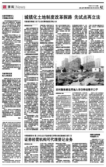城镇化土地制度改革探路 先试点再立法