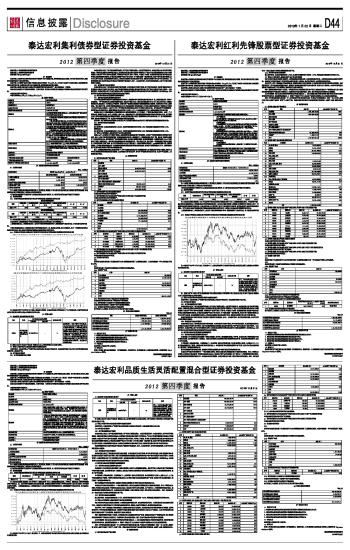 泰达宏利集利债券型证券投资基金2012第四季度报告2012年12月31日 2013-01-22 来源:证券时报网 作者: