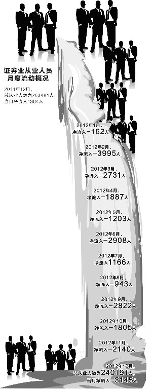 证券业薪酬骤降 去年净流失2.3万人 2013-01-28 来源:证券时报网 作者:黄兆隆