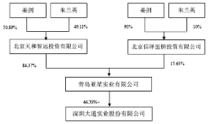 第五节 公司规范运作情况 一、法人治理 上市公司已按照《公司法》、《证券法》、《上市公司治理准则》等法律、法规及中国证监会、深交所的相关规定,在公司章程的框架下,设立了股东大会、董事会、监事会等组织机构并制定相应的议事规则,建立了比较完善的内部控制制度,制订并实施了《公司章程》、《股东大会议事规则》、《董事会议事规则》、《监事会议事规则》等法人治理制度。公司上述法人治理制度的内容符合《公司法》、《证券法》、《上市公司治理准则》及《上市公司章程指引(2006 年修订)》等法律、法规和规范性文件的规定。从制度上保证股东大会、董事会和监事会的规范运作和依法行使职责。 公司、公司控股子公司不存在对本次申请恢复上市具有实质不利影响的重大行政处罚;公司现任董事、监事、高级管理人员不存在因违法违规受到刑事处罚或行政处罚,不存在因违反深交所上市规则或者深交所其他相关规定受到深交所处分,不存在因违法违规被立案稽查现象。 根据国富浩华出具的《内部控制鉴证报告》(国浩核字[2012]835A1760号),深大通已经按照《企业内部控制基本规范》及相关规定,于2012年10月31日在所有重大方面保持了有效的与财务报表相关的内部控制。 二、人员、资产、财务的独立性情况 股权分置改革完成后,亚星实业获得上市公司控股权,为上市公司控股股东,姜剑为上市公司实际控制人。上市公司在人员、资产、财务等方面与控股股东、实际控制人及其关联方保持独立,具备直接面向市场独立经营的能力,符合中国证监会、深交所关于上市公司独立性的相关规定。 (一)人员独立性 公司与控股股东及其控制的其他企业、实际控制人控制的其他企业在劳动、人事及薪酬方面相互独立。深大通的总经理、副总经理、财务负责人和董事会秘书等高级管理人员未在控股股东及其控制的其他企业、实际控制人控制的其他企业中担任除董事、监事以外的其他职务;上述人员全部在上市公司领取薪酬,未从控股股东及其控制的其他企业、实际控制人控制的其他企业领取薪酬。深大通的财务人员未在控股股东及其控制的其他企业、实际控制人控制的其他企业兼职。 上市公司控股股东、实际控制人出具的《关于保持上市公司独立性的承诺函》中承诺:①保证上市公司的总经理、副总经理、财务总监、董事会秘书等高级管理人员在上市公司专职工作,不在亚星实业及其控制的其他企业(以下简称“关联企业”)中担任除董事、监事以外的其他职务,且不在亚星实业及其关联企业领薪;②保证上市公司的财务人员独立,不在亚星实业及其关联企业中兼职或领取报酬;③保证上市公司拥有完整独立的劳动、人事及薪酬管理体系,该等体系和亚星实业及其关联企业之间完全独立。 (二)资产独立性 公司股权分置改革中的资产重组已经实施完毕,控股股东和实际控制人已履行向上市公司交付资产的全部义务。目前,深大通为控股型公司,截至2012年10月31日,深大通直接或间接持有以下公司股权: ■ 上述公司均已通过2011年度工商年检。 上市公司控股股东、实际控制人出具的《关于保持上市公司独立性的承诺函》承诺:①保证上市公司具有独立完整的资产,上市公司的资产全部能处于上市公司的控制之下,并为上市公司独立拥有和运营;②保证亚星实业及其关联企业不以任何方式违法违规占有上市公司的资金、资产。 (三)财务独立性 公司具有独立的财务部门和独立的财务核算体系,具有规范、独立的财务会计制度和对子公司的财务管理制度,财务机构和财务人员独立。公司的财务管理制度是根据国家会计制度、结合公司实际情况制定的,公司财务机构及下属单位财务机构独立办理会计业务,进行会计核算,拥有独立的银行账户和纳税专户,资金完全独立地存放在公司的银行账户。 上市公司控股股东、实际控制人出具的《关于保持上市公司独立性的承诺函》中承诺:①保证上市公司建立独立的财务部门和独立的财务核算体系;②保证上市公司具有规范、独立的财务会计制度和对分公司、子公司的财务管理制度;③保证上市公司独立在银行开户,不与亚星实业及其关联企业共用一个银行账户;④保证上市公司能够作出独立的财务决策,亚星实业及其关联企业不通过违法违规的方式干预上市公司的资金使用调度;⑤保证上市公司依法独立纳税。 上市公司资产完整,具有独立面向市场的经营能力。控股股东及实际控制人不存在违法违规占有上市公司的资金、资产现象,并为保持公司独立性作出了合法有效的承诺,如果严格依照有关规定及承诺履行,上市公司将保持资产完整,机构、财务和人员独立,能够实现独立运作的要求。 三、关联交易情况 (一)关联方情况 1.存在控制关系的法人关联方 (1)亚星实业(公司的控股股东) ■ (2)北京天和智远投资有限公司 ■ (3)北京信泽至恒投资有限公司 ■ 2.存在控制关系的自然人关联方 亚星实业持有上市公司44.79%的股份,系公司的控股股东。北京天和智远投资有限公司和北京信泽至恒投资有限公司合计持有亚星实业100%的股权,姜剑先生系上述两家公司的控股股东,因此姜剑先生为公司的实际控制人,其控制关系如下图所示: ■ 姜剑先生,1967年出生,中国国籍,未取得其他国家或地区居留权,硕士学位,经济师