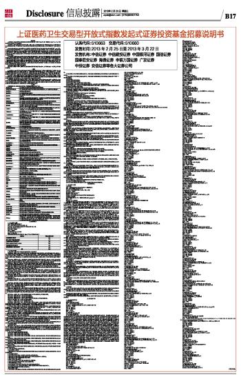 上证医药卫生交易型开放式指数发起式证券投资基金招募说明书 2013-02-20 来源:证券时报网 作者:
