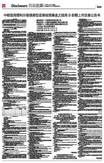 中欧信用增利分级债券型证券投资基金之信用B份额上市交易公告书