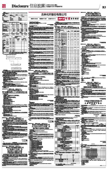 证券代码:000420 证券简称:*ST吉纤 公告编号:2013-10 吉林化纤股份有限公司2012年度报告摘要及公告(系列) 2013-02-26 来源:证券时报网 作者:
