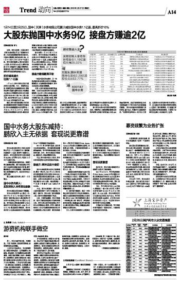 证券时报记者 向南 市场喜欢野心勃勃的故事,国中水务就提供了这样一个故事的样板。 就在股东层面频繁变动之际,国中水务主营业务发展一直比较积极,走出了一条频繁募资收购之路。 国中水务2009年4月17日恢复上市,当年11月6日即推出增发预案,底价为6.55元/股,2010年3月国中水务将增发底价下调至6.51元/股,但其股价在2010年下半年一路暴涨至13元附近。引来众多机构投资者追捧,最后其增发价被提升至7.5元/股。这部分资金被用于收购马鞍山等污水处理公司,此后,这部分资产成了国中水务业务主体。 早在去年下半年,国中水务再次提出议案,拟以发行价不低于8.03元/股非公开发行股票不超过12.26亿元用于收购天地人90%股权、进行水务工程建设、增资天地人和北京中科。截至2011年,国中水务污水处理产能为58万吨,自来水供水产能36万吨,新增的项目将增加污水处理能力15万吨、自来水供水8万吨及原水5万吨。 正因为市场对国中水务发展模式抱有预期,才给予国中水务高达93倍的动态市盈率(PE),国中水务PE在水务类上市公司中偏高,截至昨日收盘,南海发展动态PE为21倍,洪城水业为22倍,重庆水务为17倍。 市场上也有不少上市公司,在自有资金缺乏情况下,走出融资发展模式,例如永泰能源,频繁动用融资工具,收购煤矿资产。苏宁电器、万科也都是融资大户。 但研究国中水务的分析师比较少,记者搜到的关于国中水务分析报告寥寥无几,在一篇报告末尾,分析师给予“中性”评级,还有分析师给予“谨慎推荐”。 本版导读: